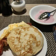 The room was average. The breakfast was good.