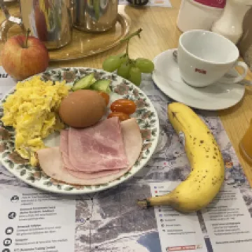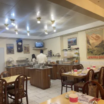 This hotel is super conveniently located, just about 400 meters, a few minutes' walk, from Interlaken West train station and the Lake Thun ferry terminal. There are bars, restaurants, and a supermarket nearby, which is great. When you check in, the front desk gives you a free bus pass. The breakfast is delicious and plentiful. There's a lounge on the ground floor with a microwave and utensils for guests, and coffee and hot water are available 24/7 for free. The owner is a kind, warm, and funny old gentleman. If you're coming to Interlaken, definitely choose this hotel – you'll be happy you did!