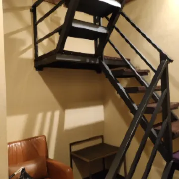 It is a small family-run hotel that won many accolades. We booked 2 nights - Duplex Family Room. One King bed on the ground floor and a very steep staircase to the second room where there are 2 single beds. A flat screen TV is also provided at this second room too.