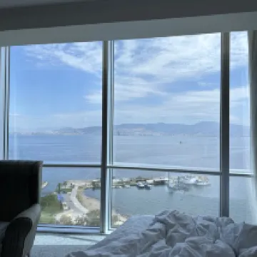The location of the hotel is great. There is a seaside park at the doorstep, and there are warships that you can buy tickets to visit. The day we went there happened to be a weekend, and there were many families coming to the park for activities, and the traffic was congested 🤪 The traffic jam lasted for half an hour for several hundred meters. It was 4:30 when I arrived at the front desk. Fortunately, the check-in was fast, and I was upgraded to a sea view room (but the floor was very low, on the 4th floor), and I could see the sunrise in the room.