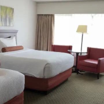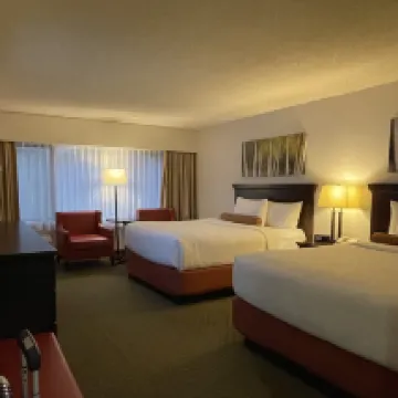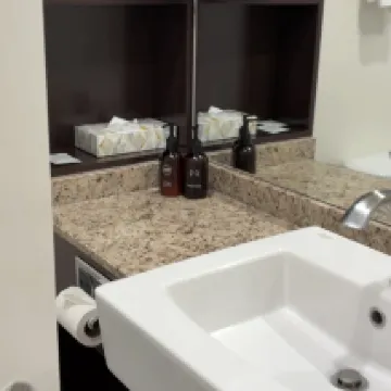 Nice cosy room with 2 sinks which is great for a family of 4. There is a pool and hot tub which we didn’t get to use. There is a basement parking which is great!