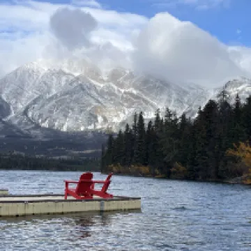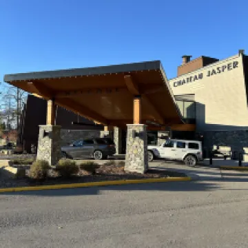 We stayed here for one night. The room was bright and spacious. I liked the sliding shower door. Usually hotels have curtains that get wet and sometimes water leaks outside. The bathroom was small but clean with good lighting. It had a fridge, microwave, coffee maker and tv. The room window was nice and big. The pool and hot tub was a great amenity. The pool place had nice big windows with a great view. I loved the shower/restroom (with a bench) by the pool which made it convenient to shower and change before heading back to the room. They also provided pool towels. The location was conveniently located near restaurants and maligne canyon (which was closed due to the wild fire). Breakfast wasn’t included. I would recommend staying here.