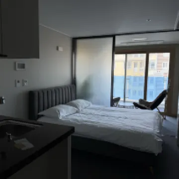 I chose this hotel for my trip to Jeju Island because of its location. It's right near the duty-free shop, and after checking in, I confirmed that it's indeed very conveniently located, also quite close to the airport. The only downside is that the price was the equivalent of all the other hotels I stayed at in Jeju combined, making it a bit pricey. However, I got to experience a hotel-style apartment, complete with pots, pans, and a washing machine, which was actually quite nice.