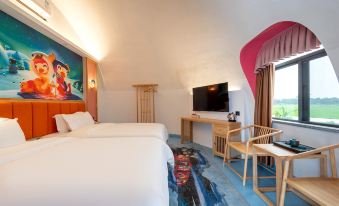 Pastoral Family Twin Room (Cartoon Decoration + Private Terrace + Pastoral Scenery)
