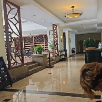 The environment was peaceful. I have an impression that the resort is near the beach unfortunately not. Since it's an old hotel not that well maintained. Need to do more maintenance to keep it well. There is a leak in the toilet and the AC is noisy, the technician came and fixed it after a night of noise. It would be nice if there was a kids pool The breakfast is not that fancy it's a normal menu. After all a decent stay. Thanks.
