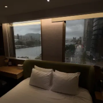 We chose to stay here because of a concert being held nearby. Location is superb, less than 10mins walk from the rail station and you get a nice river view. Room is very clean and spacious. Breakfast is a good selection of mainly Taiwanese/Chinese/Cantonese style dishes. I heard you get a free afternoon tea as well but we didn't get to try it. There is a 7-11 right next to the hotel building so you can conveniently try all the goodies in there. Loads of food and restaurants nearby. Will be back if have a chance!