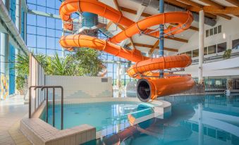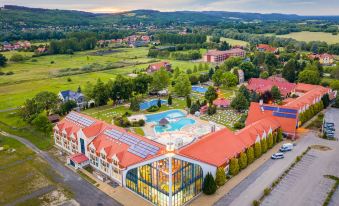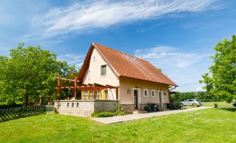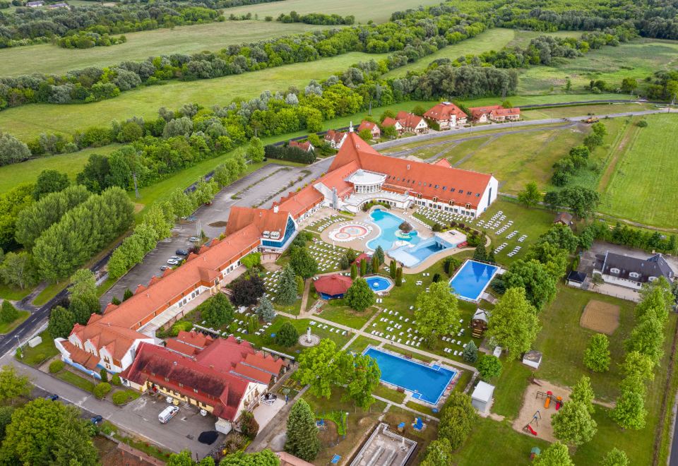 Kehidakustány 21 km from Keszthely: Mums, dads, kids and grandparents can enjoy the thermal Kehida all year round! beautiful, cosy resort, built in 2005. 15 houses in the resort. Outside the resort, in a quiet, sunny position, 300 m from the lake, in a cul-de-sac. For shared use: garden (not fenced) with plants, swimming pool (above ground) indoor pool heated (seasonal availability: 01.Jan. - 31.Dec.). WC in the pool area, shower/WC in the pool area, children's pool, slide, outdoor shower, hot tub, children's playground (sandbox). In the complex: reception, restaurant, bar, breakfast room, WiFi, sauna, fitness room, massage (extra). Steam room, solarium (extra). Hot tub, infrared sauna, bicycles available. Linen change weekly. Towel change 2 times per week. Room cleaning 2 times per week. Breakfast and half board possible (extra). Supermarket 8 km, shopping centre 11 km, restaurant, café 100 m, bicycle rental 100 m, indoor swimming pool 150 m, thermal baths 150 m, bathing lake "Balaton" 21 km. Golf course (9 hole) 1.5 km, children's playground 150 m. Well-known lakes can easily be reached: Hévíz 8 km. Please note: entertainment. Suitable for families, baby equipment on request. please note: free entry to the water park, treatment bath, beach and sauna. "Kehida", 3-room semi-detached house 70 m2 on 2 levels. Spacious and bright, simple and comfortable furnishings: open living/dining room with (2 pers.), dining nook and cable TV (flat screen). Open kitchen (2 hot plates, 2 ceramic glass hob hotplates, microwave, electric coffee machine). Exit to the terrace. Bathroom, sep. WC. Upper floor: 1 room with 1 double bed (180 cm, length 200 cm). 1 room with 2 beds. Shower/WC. Heating. Terrace. Terrace furniture. View of the countryside. Facilities: children's high chair, baby cot, baby changing unit. Parking at the house. Please note: suitable for families. Non-smoking house. Maximum 1 pet/ dog allowed. The property is one of a type of property or apartment. SZ19016225