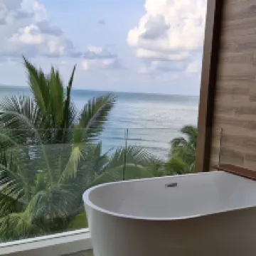 Great beachfront accommodation with a lovely ambiance. The rooms are beautiful, clean, and comfortable. There's a delicious and well-priced seafood restaurant right next to the hotel. Plus, there's a 24-hour convenience store directly across the street, which is super handy!