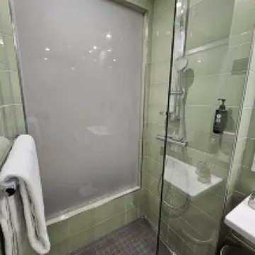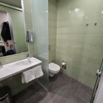 This hotel suffers from a classic 'broken window syndrome.' Everywhere on the walls – whether in the hallways or rooms – there are scratches, streaks, or chipped corners. The maintenance is clearly lacking. The rooms have an odd layout and don't feature any shelves or wardrobes. The glass door in the bathroom takes some getting used to. The hotel also doesn't have its own parking lot, nor does it partner with any nearby parking facilities. For a city hotel, this feels very outdated.