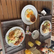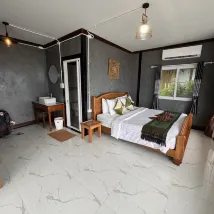 The room is as booked. The staff provides good service. Breakfast is varied. There is no telephone in the room, so when you want to ask something, you have to go to the reception. Sometimes it's inconvenient for us to go. It's quiet and peaceful, suitable for relaxing for 1-2 nights. The cats at the accommodation are cute and cuddly. The sandy beach is beautiful and clean. They have a welcome drink service. The price is not expensive when compared to the view and atmosphere. I highly recommend it.