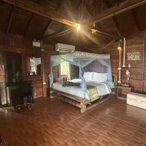 Fabulous stay, 5 days not even enough! Beautiful teak wood villa, old magnificent architecture for the cabins, very spacious, amazing sea views, private beach, use of kayaks, wonderful sunsets - easy and affordable airport transfers! Will return