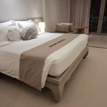 During the Chinese New Year, hotel prices were outrageous. I unexpectedly booked this hotel, which had very few Chinese guests, and the price was very reasonable. To my surprise, the rooms were quite good, spacious, and both rooms had small balconies. The hotel environment was also nice, with two swimming pools, one by the sea and one outside the villas. The rooms were generally clean, but the air conditioning hadn't been cleaned in a long time; you could see a layer of dust in the vents. The hotel breakfast was a bit disappointing, with not much choice or variety, and no kids' meals, which wasn't very friendly for picky eaters. The hotel is within walking distance of a local restaurant with good reviews (recommended on Xiaohongshu for beautiful sunset views). Although most staff didn't speak Chinese, they were very enthusiastic. Except for one male front desk staff member wearing glasses. When checking in, I mentioned my early flight and was advised to pre-order a breakfast box the day before. However, this staff member kept trying to get me to book a car (a private van costs 700, the hotel charges 1000). I said three times that I wanted to order breakfast, but he acted as if he didn't hear me. It wasn't until I said I wasn't booking a car and just wanted breakfast that he told me to go eat at the restaurant myself! He had a disdainful attitude throughout. I've been to so many countries and so many hotels, and this is the first time I've encountered such terrible service.
