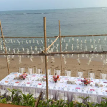 They have one small beach and one big beach. Due to tidal conditions, only the small beach is usually usable. We were asked to move after 12:00 PM because of wedding preparations. The big beach is often not usable due to waves and tides, and you need to wait until 2:00 PM for the tide to change.