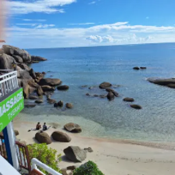 Little paradise , propably the best beach on the island. Beautiful Sunrise. Near to hotel good restaurants and 7/11. Nice people. Rooms are clean. Absolutely recommend. You can rent motorbike in a hotel and buy trips. Wi-fi is good and speed.