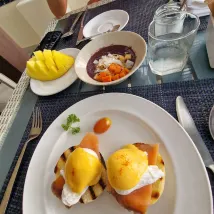 Response from Property: Dear Edoardo,Thank you for taking the time to share your feedback. We are pleased to know you appreciated the early check-in and that our team made your short stay enjoyable. Your comments regarding breakfast quality and presentation are well noted and have been shared with our culinary team for review and improvement.We appreciate your constructive feedback and hope to welcome you again soon for an even better experience.Warm regards,Frederic KoldeGeneral Manager