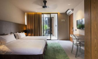 It is a beautiful resort-vibe kinda guesthouse. The room has modern and trendy touch. It is close to Teluk Cempedak and the city centre.