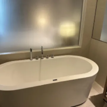 The room was quite spacious, but it seems the bathtub leaks. After a bath, the entire bathroom and bath mat were damp.