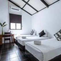 Spacious in common area. Room n toilet are clean. Bring ear plugs as room is not soundproof. I got awoken by squeaking bed from other room next door, from conversation outside, from walking steps n room door closing. Swimming pool is my favorite spot n sitting in the open space chilling. Oh no tissue box in the room do bring your own. Simple breakfast of toast n cereal. Coffee, tea, milk available. You need to walk flights of steps w no elevator so dont take too heavy luggage.
