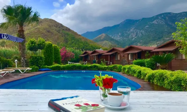 This is simply a very beautiful hotel. The pool is surrounded by wooden bungalows and a pittoresque Mediterranean garden, the scenery is throned by the impressive mountains of Adrasan. This scenery was so beautiful and peaceful (you see no other buildings) that for the first time in our lives we spent full 3 days (of 7) in the poolside, not going to the ocean (ehich is only 2 minutes away). Everything else was great: the bungalow was surprisingly spacious and comfortable, very clean and with air conditioning. The staff was lovey and very helpful (a special thank you to Uğur and his lovely wife, the owner Serkan and our dearest Civan). Whatever request we had, the staff helped us get it organized (transfer to the airport, boat trip etc). Breakfast buffet was very nice every day, and you can order tasty meals throughout the day and evening. All in all this was a magnificent hideaway we fell in love with. The location alone must be the best in Adrasan, I haven't seen anything that comes close. I highly, highly recommend it. Thank you again for a most wonderful stay!