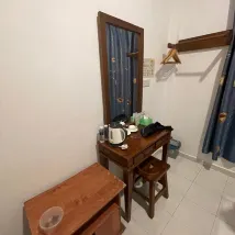 No WiFi, the road is very bad for going in to the hotel. Very inconvenience. Got dust mites issue, causing skin sensitive and unable to sleep. The staff service very good. Got friendly dogs. The ceiling going to fall down. Water heater need to wait long time and hot water very fast finish. No TV. Got water filter but no water.