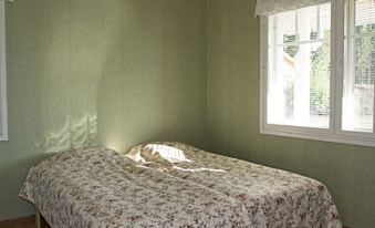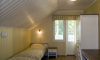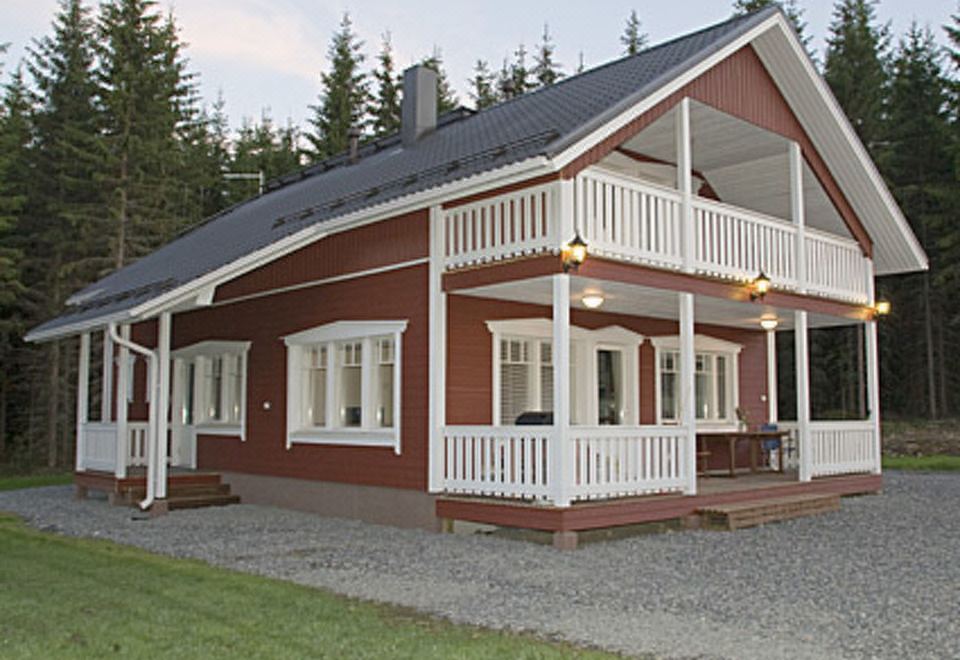 Wooden cottage 2007, living room/ kitchen, bedroom 2 beds and child's bed. Upstairs: hall, bedroom 3 beds, bedroom 2 beds, bedroom 4 beds. Downstairs: sauna (electric stove), washroom, dressing room/ utility room, open porch. Gas heated ring burner + Muurikka steel pan as gas grill. Car port. There is also charcoal grill at the cottage (client brings charcoal and ignition fluid).