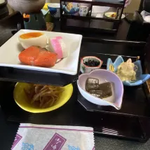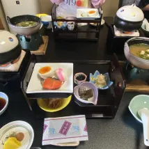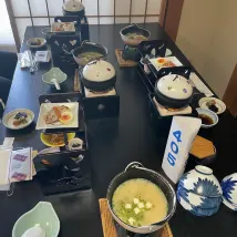 This lovely Ryokan was a perfect example of Japanese hospitality at its finest. The rooms feature classic tatami mats, bedding, a welcoming sweet treat and tea service, modern bathrooms and rice paper screens. The on-site onsen was the perfect cure for exhausted muscles. The staff were very helpful, and the sumptuous breakfast set they served was delicious, visually stunning and fueled us through our busy day of touring. I highly recommend it. Five stars!!!
