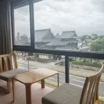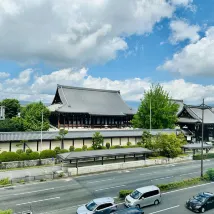 The hotel is about 1.5 km from Kyoto Station, a 10-minute bus ride away. It's a Japanese-style hotel with a limited number of rooms. Although it's a bit older, it's very well-maintained and clean. The breakfast is a traditional Japanese one and quite substantial.