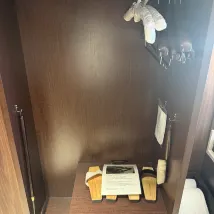 The hotel's location right next to Kyoto Station is unbeatable. We were able to drop off our luggage early and head straight out to explore/shop. Toiletries are conveniently available for self-service pickup next to the elevator on the first floor. I would definitely stay here again on my next trip.