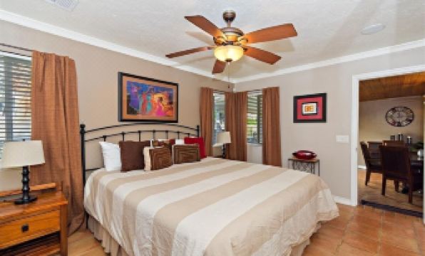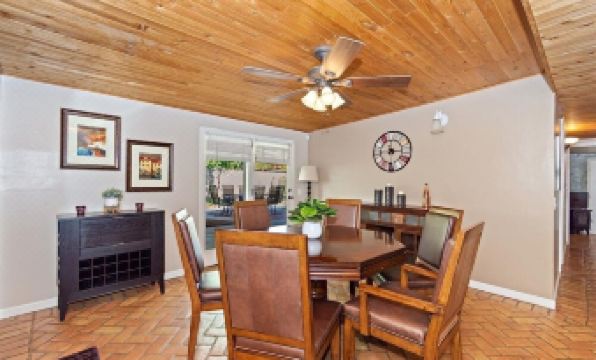 This home is perfect for families or couples who want to relax in the desert. The kitchen is fully stocked, there are games, family movies, bicycles, pool toys and an air hockey and foosball table. On a large double lot, the backyard has a covered patio, built in BBQ, dining table, and even a firepit to cook up some smores so you can enjoy stars over the clear desert sky. Swings in the backyard save you from a trip to the park. A gated pool with a slide and a hot tub allows for maximum vacation enjoyment, while ensuring the kids are safe to play. Located within walking distance from Old Town LQ and hiking/running trails!