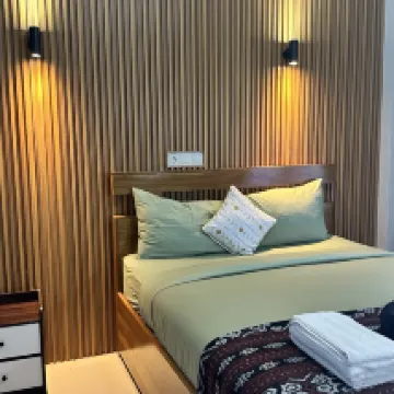 Very close to the airport about 5min walk, however a 25min walk to the harbour luckily all downhill. Would recommend taking a grabscooter since they have no grabcar in the town. Staff was super friendly and helpful. The room was surprisingly big so it took some time to cool the room down with air conditioning. Besides that the beds were nice and the toilet and shower were as well