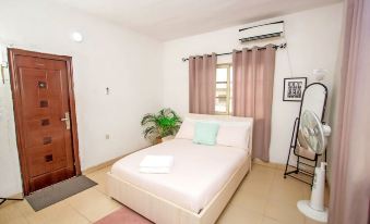 A 2 bed flat with a living room located on College Road (Ifako-Ogba, Ikeja). The road has many shops. UBER/TAXIFY ready. All rooms have an A/Cs. Electricity is generated by solar-inverters and NEPA. We also have a stand-by generator. 32 Inch with GOTV. WIFI. 4 Fans provided per flat. 24/7 security. All bedrooms comes ensuite with toilet/showers. There is a kitchen. WE DO NOT ACCEPT 1 GUEST BOOKINGS (Minimum 2 guests please, or a cancellation & fine will be incurred). ThanksAbout pets:No pets allowed.About children:Children allowed: ages 0-17.About smoking:Smoking is not permitted.About events:No events allowed.
