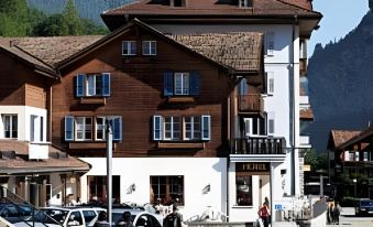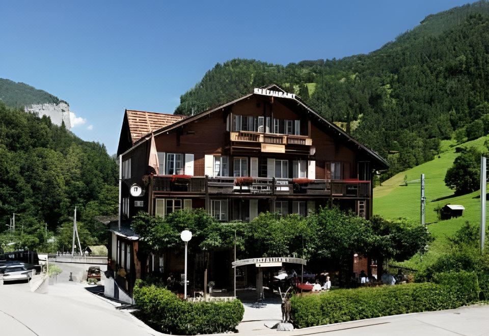 The Hotel Steinbock is located at the edge of Lauterbrunnen opposite the train and cable car station for Grütschalp, Mürren and the Schilthorn.