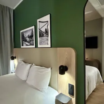 Hotel to flee. Reservation of 4 nights I finally made only one. In the room on the courtyard side you have the noise of the ventilation constantly all night long. I measured the noise with my phone with an average of 50dB in the room. The legal limit is 30dB at night. So at 2:30 a.m. I asked to change rooms. There I find myself in a room where the wood of the window is moldy and lets air through. 16 degrees in the room if you have the misfortune to put the heating you end up with a plane in your room. Cold or noise, you have to choose. Result the next morning I asked to cancel my next 3 nights. And I'm not talking about the breakfast with the machines out of order, the endless waiting time at the reception because the person is not there... in short, the worst experience I've had in a hotel. I don't even understand how this hotel can be rated 3 stars.