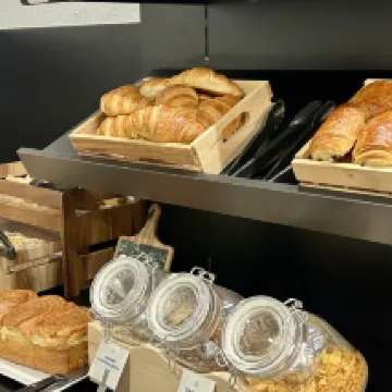 The breakfast was excellent, very French, as shown in the picture. The area under the floor mirror in the room was perfect for large luggage. The wardrobe area was good for backpacks and other small items. The room wasn't large, but the space was used very well.