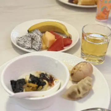 1. It's just a short walk to the Grand Waterwheel. 2. Hotel parking is convenient. 3. We received a shawl upon check-in. 4. The hotel upgraded our room for free and even gave us cookies and Coke, which my child loved! That's why my child always asks to stay at Atour. 5. The hotel breakfast was also very rich and varied.