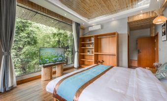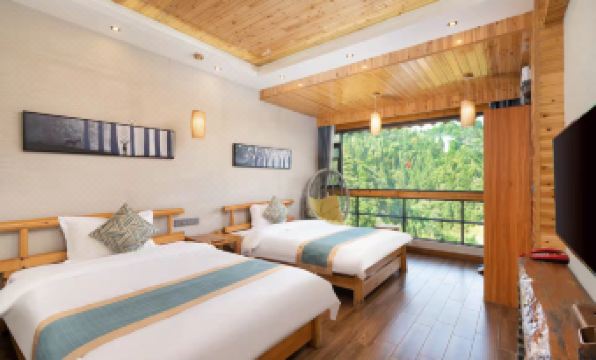 Entering the guest room, wooden elements can be seen everywhere, including solid wood flooring and a large wooden bed. The balcony opens towards the mountain, pushes open the window, sits on the sofa, quietly watching the pine forest and cloud sea, the kitchen smoke ladder, washing away the fatigue of the journey. You can also choose to soak in a bathtub, have a glass of red wine, and switch from body to heart to vacation mode.