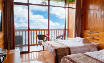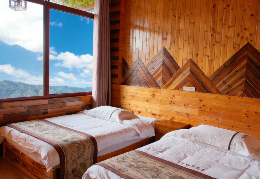 My friend said that Guzhuang Village is quieter, but I don’t like too much excitement, so I chose Guzhuang Village. But there are no buses that can go up there, so we can only get a bus at the foot of the mountain, or see if we can wait for a ride. I went there on 7.11. When I arrived at the hotel, I found that I was the only one staying there. Maybe it was not in the peak tourist season. I booked a regular room because there were few tourists, so the landlady asked me to move to a large view room (the room was very big and had a beautiful view), and because her family went to do farm work and no one was home, she let me I went to the front desk to get the key card to open the door and rest.