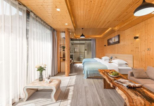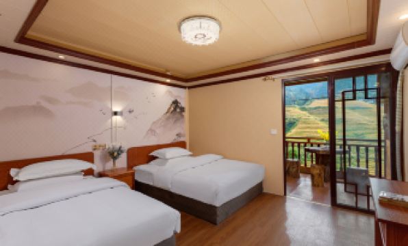 The room we stayed in had a small balcony, and we could enjoy the view of the terraced fields from the room. We had dinner at the B&B in the evening and ordered bamboo tube chicken and bamboo tube rice. Highly recommended. 👍🏻 After the meal, we also drank rice wine and Luo Han Guo tea given by the boss. It was really refreshing. . The next morning, the boss took me to the No. 2 Observation Deck in a small tram. When I returned at noon, I was so hungry that I ordered Guilin rice noodles. The boss even helped me add toppings and it was almost full.