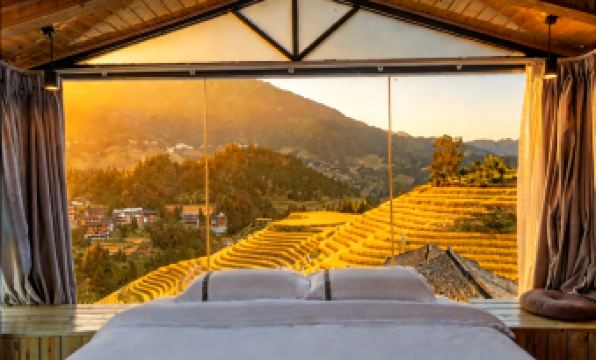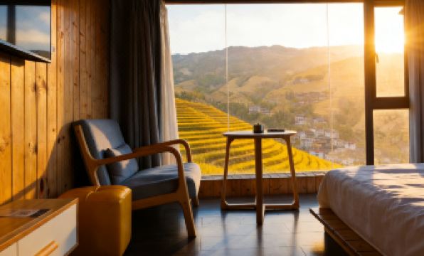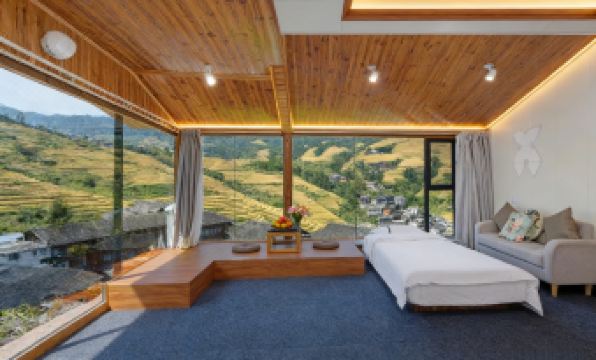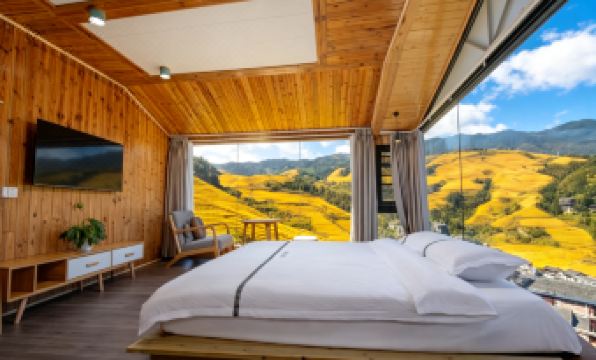 If you desire to deeply immerse yourself in the magnificent grandeur of Longji Terraced Fields, the Ramble Cloud Residence Intelligent Panoramic Hotel—situated in Zhuangjie, Dazhai Village, the core scenic area of Jinkeng Dazhai Terraced Fields—stands as an ideal choice worthy of the title "King of Prime Viewing Spots". Strategically located at the high ground of the hillside beside the "Thousand-Layered Sky Staircase Viewing Platform", the hotel occupies a golden viewing angle for the terraced fields. There’s no need to rush around searching for a viewing spot; simply lie on the bed in your guest room, and you can take in the entire winding landscape of Longji Terraced Fields. Push open the window, and the tranquil charm of the ancient Yao Village greets you—ancient "Red Yao Stilt Houses" are scattered in an orderly manner, and core scenic spots such as "Thousand-Layered Sky Staircase" and "Golden Buddha Peak" unfold like a huge scroll hanging right in front of your window. Every glance captures a stunning scene co-created by humans and nature, truly fulfilling the prime viewing experience of "seeing terraced fields when opening the window and enjoying the grand scenery while lying on the bed".