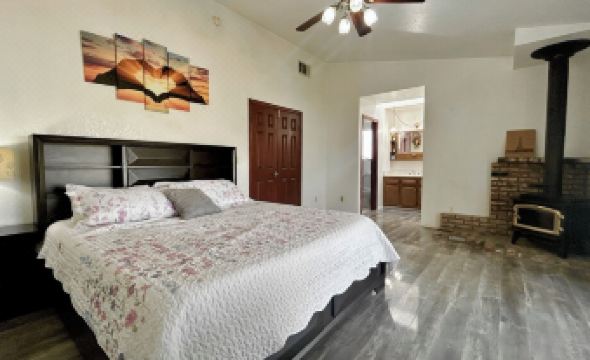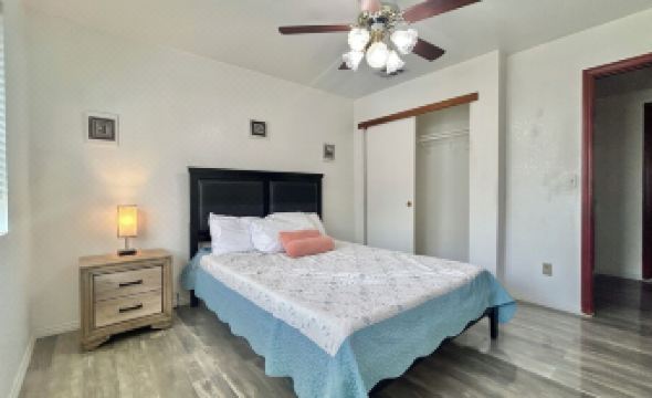 Whether you are traveling for work, or hosting a small gathering with friends and family, this house is perfect for you, featuring a driveway that can fit up to 6-7 vehicles. The backyard is spacious giving enough room for hosting a BBQ session or just hanging out. On the inside, the kitchen has all the essentials needed for cooking. By the way, when it is pomegranate season, make sure to check out the pomegranate tree. The house is located 4 miles from Palmdale’s shopping district. The property layout has a master bedroom, 2 guest rooms, the playroom that has been converted into a bedroom, bar, dining, and living room combo, a main living room, main dining room, and a kitchen. Outside, there is a covered patio in the backyard and a garden of Moss-rose purslane in the front.About pets:No pets allowed.About checkOut:Check out before 12:00 PM.About children:Children allowed: ages 0-17.About checkIn:Check in after 3:00 PM.About smoking:Smoking allowed: in designated areas.About minBookingAge:Minimum age to rent: 20.About events:Events allowed: family gatherings and birthday parties.Maximum event attendees: 20.