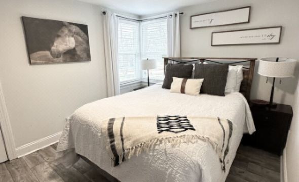 This cottage is designed for a small family in a quiet neighborhood but plenty of retail within minutes. Great location for a long weekend visiting your college-aged child.