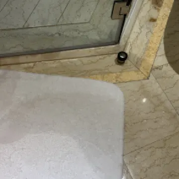Finally, when I opened the bathroom glass door, a strong foul odor immediately came out. I had to spray the shower area with the showerhead to make the smell slightly fade. The large gap in the door also caused water to leak, and the carpet was completely soaked after my shower.