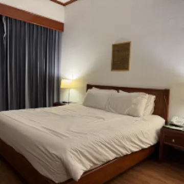 The hotel is located opposite a shopping mall with convenient parking. However, the hotel is quite old, so some furniture looks a bit worn. The bed linens are not brightly colored, and the pillows are not very comfortable to sleep on. At night, there may be noise from cars driving on the road that can be disturbing. The parking space in front of the hotel is spacious.