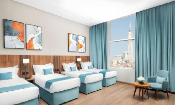 Elaf Qinwan Hotel is the best! The hotel is nice, clean, fragrant, and quiet, with no crowds. The distance from the hotel to Al Haram is a bit far, but they provide a 24-hour shuttle. You just need to keep an eye on the shuttle timings, especially on Fridays. The shuttle drops you off at Jarwal, but it's not the same spot as other shuttle buses; it's exclusively for Rawahi shuttles. From the shuttle parking, it's about a 10-minute walk to Al Haram, but it doesn't feel that long because there are so many people around. The walk has a slight incline and decline, but even elderly women with walking sticks manage it steadily, which makes us younger ones feel a bit ashamed! In front of the hotel, there's a market selling daily necessities, including fresh bread for just 1 SAR. Buy two slices, dip them in 3-in-1 coffee for breakfast – it's filling! Next to the market, there's a mosque, so if you can't make it to Al Haram, you can pray congregational prayers there. And next to the mosque, there's a shopping mall, haha, it's quite complete. To the right of the hotel, there's Syifa Hospital, which is the hospital for those using Al Khairi care, but it's for inpatients. For outpatients, it's near the clock tower. Further to the right, there's an Arabic rice shop that looks a bit quiet, but the food is decent. I bought a quarter chicken Mandy for just 11 SAR. The Kunafa was 6 SAR and even tastier than Romansiah's, hahaha! What else, what else, hahaha. Anyway, Elaf Qinwan is definitely suitable for those who prefer peace and quiet, no crowded lifts or shuttles, even though I visited during peak season. And most importantly, the price is affordable. I took a couple's room, it had 4 beds, and the hotel was still spacious. I went DIY. Just one picture... I returned to the hotel right after Subuh prayer when many people were heading back, but the bus was still not crowded, huhu.