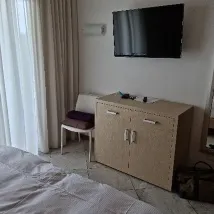 When you arrive, the hotel makes a nice impression, you are warmly welcomed, but you are not greeted, rather coolly distant. Unfortunately there is almost only negative things to say about the room itself. When you arrive, the floor is dirty, you immediately have black feet when you walk barefoot. Shabby, coffee machine that's no good, plates dirty from the previous person (how much do you pay for final cleaning?), the coating on the pots is partly chipped off, very healthy! The extractor hood is greasy when touched. Fridge somewhat ok. The television, an inadequate mini unit with an even more inadequate channel list. 20 Italian channels, 3 German ones, ARD, ZDF and RTL, picture quality poor. In this day and age, satellite television is probably standard. Not necessary on vacation? We had rainy days... The bed was chipped everywhere, there was no table in the room, you had to get it from the balcony. Storage space, cupboards more than sufficient. The mini kitchenette has seen better days. Towels, they are changed once a week, but they are thin towels, so it's better to bring your own. And change once a week? Oh well. Bathroom was clean and ok. Cleaning staff comes once a week, definitely not enough! The facility itself could use a new coat of paint. Breakfast: for a full cup of coffee you have to queue 3 times because it's only 1/3 full, which is annoying. Selection: cakes, cakes and more cakes, a few lousy rolls, few sausages and fresh cheese, no tomatoes, cucumbers etc. A lot of cereal. And packaged jam, Nutella. After the first breakfast we left it alone! Lidl is not far away and you can get really good bread rolls and also good cheese and sausage products there. There is also a baker nearby. So, breakfast on the balcony with a fantastic view. But as I said, “An absolutely great view doesn’t excuse everything!” If the facility is not renovated, we will not go there again, especially since the prices for the same period at ************ have increased by €300. For the run-down situation, this is an outrage.