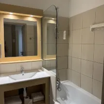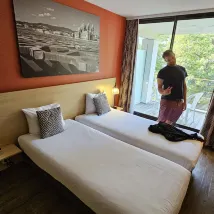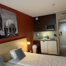 The hotel doesn't even deserve 1 star. The facade is in poor condition which already means nothing good, not to mention the balcony. There is absolutely no light in the room, we were told that we are doing it wrong. So we did what we were told but the light still didn't work so the room was very dark in the evening, speaking with another hotel guest he had the same problem. We asked for a late C/O, the lady told us no, unfortunately we were full, but after 30 minutes we saw a gentleman come and ask for a room for the same evening and miraculously they still had rooms available. I asked for towels and they told me to come and collect them yourself in the evening (three-star service??) and no hair dryers in the rooms depending on availability. In short, really the only positive thing is the location but other than that it's really mediocre.