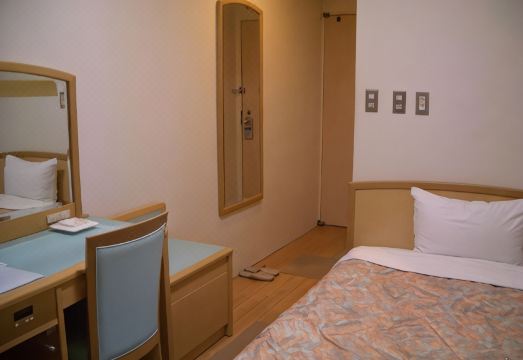 The hotel is conveniently located, just a 10-minute walk from Shin-Matsuyama Station, past the old station. Nearby options include McDonald's, ramen, udon, and donburi. It's also close to the city's train system (essential for getting to Dogo Onsen and Matsuyama Castle). The biggest issue was the hotel elevator, and even the room, which had a musty smell. Luckily, I brought some toilet water, originally for mosquito repellent, which helped significantly. I also sprayed the bed with AQ spray before I could sleep peacefully. However, there's no power switch or USB power supply at the bedside, so you need a long enough cable to use your phone or tablet in bed. The hotel's Wi-Fi connection was completely unavailable, and I even forgot to provide the password slip on my first day. I searched the room for documents, but there was nothing there! The luggage storage area was small, so I had to abandon the desk for my suitcase and use the space for daily necessities. It felt like I was time-traveling back to a hotel I'd stayed in twenty years ago. The room was reasonably clean, but the towels were dark blue and very stiff, so I had to use the spare disposable towels I brought with me (I'll always bring them on future trips, as I might need them).