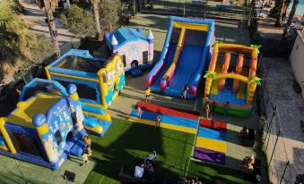 We stayed at this beautiful resort in June. It is a wonderful place, surrounded by greenery, with two swimming pools, children's playground, and pizza restaurant. The house was spacious and equipped with everything we needed. We ate very well, especially the pizza was very good. The staff is kind and professional, always willing to help us. It is equipped with parking facilities. A good experience that we will repeat again this year.