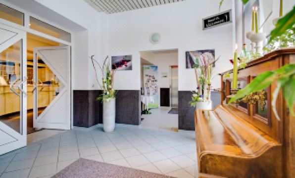 Das ehemalige Industriegebäude liegt vor einem Discounter und einem Markt für Heimtierbedarf. Reist man mit dem Auto an, gibt es sogar eine Tankstelle... Zu Fuß mit der Bahn ist es ein gutes Stück zu laufen. Ich habe Industriearchitektur durchaus auch anders gesehen.... Die Hotelzimmer sind sehr hoch, die Deckenleuchte wirft weiß-graues Licht. Die Einrichtung ist in die Jahre gekommen. Am späten Nachmittag beim Check-In saust eine Mitarbeiterin, die gerade am Abend-Buffet werkelt und zwischendurch Bier zapft an die Rezeption - freundlich, aber gestresst. Die Sauna jedoch, auf die wir uns gefreut hatten, ist schon auf Grund der von den Liegen aus gut einsehbaren Duschen (Abstand ca. 2 Meter) abschreckend. Eine Holzleiter an der Wand, Fischernetze an der Decke und hässliches grünes Licht. Dazu sehr einfache Plasteliegen, ein wackliges Tischchen mit kleinem Radio. Bis auf ein paar Klaviere (eines in weiß sehr schön ins Buffet integriert) ist dieses Haus vor allem durch eines gekennzeichnet -Lieblosigkeit. Das Frühstück schien gut sortiert ... auf den ersten Blick. Wenn man die runde Wurst vom Discounter einfach im Block viertelt und aufs Buffett legt, dann zweifle ich jedoch an jeder gastronomischen Ausbildung. Dar Kaffee hinterließ übrigens in Minuten braune Schlierstreifen in der Tasse und sah aus, als wäre der Inhalt bei Spülen des Filters erzeugt worden.