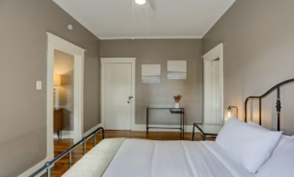 The space: This 1910's fourplex apartment building has tons of historic charm but with modern amenities and updates. The shared balcony upstairs is perfect for morning coffee. The unit itself is on the ground floor, is sophisticated yet cozy, with contemporary furnishings, vintage touches, and original hardwood floors. A shotgun house is a long narrow unit with no central hallway - so the living room flows into the bedroom which flows into the dining room, without separation; perfect for couples and solo travelers. The bathroom and kitchen were just renovated! The apartment has stylish furnishings, a big screen TV, a comfortable memory foam mattress and laundry in unit. Pets are welcome!